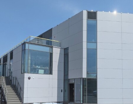 The charcoal hue of EQUITONE [natura] creates a striking contrast against the building’s angular geometry, enhancing the façade with a calm, understated texture. Its natural matt finish brings warmth and material honesty to the composition, reinforcing the centre’s connection to material science and innovation.
