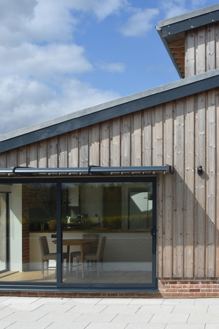 The New Barns comprise two building elements - a north barn and south barn with a link corridor. Designed as a replacement dwelling, the arrangement was dictated by the form of the original barns, with the south barn being redesigned as a storey-and-a-half. The visual appearance is an interpretation of a traditional timber facade, with rustic vertical timbers on the south barn and horizontal cementitious boards adjacent the roadway to the north.